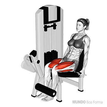 Woman performing leg extensions on a machine, targeting quadriceps for a leg workout.