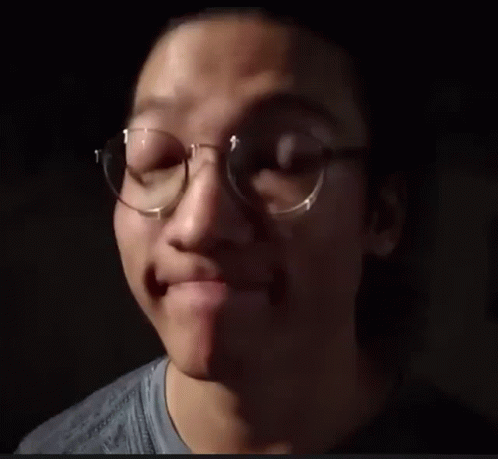 Caio Lia wearing glasses and making a funny face in a dimly lit room.