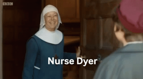 Nurse Valerie Dyer welcomes someone to Nonnatus House in a scene from Call The Midwife.