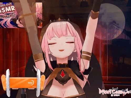 a girl with pink hair and a banner that says chill out