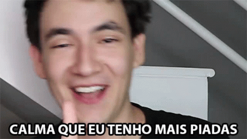 Gabriel Dearo smiles, stating 'Calma que eu tenho mais piadas' (Calm down, I have more jokes), a funny moment.