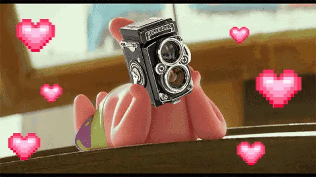 Yoonpic taking a picture with an Olympus camera, smiling and holding the device.
