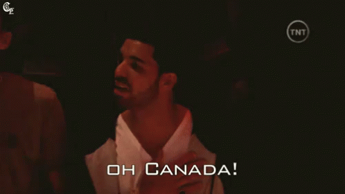 Drake passionately exclaims 'Oh Canada!' in a dimly lit room, showcasing his national pride.