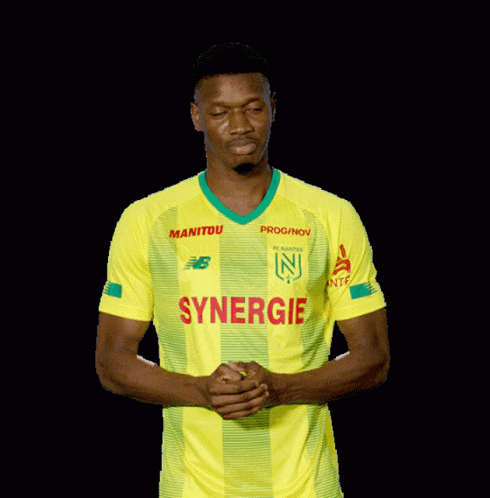 FC Nantes player Kalifa Coulibaly in his yellow jersey, showing his team spirit and pride.