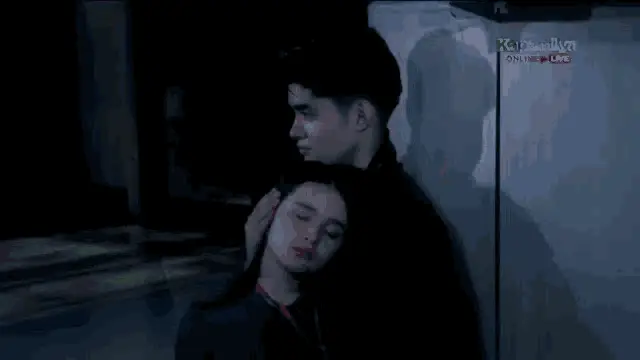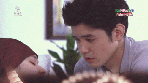 Kira Balinger and Grae Fernandez as the 'Cancer Couple' share an emotional moment, looking at each other intently.