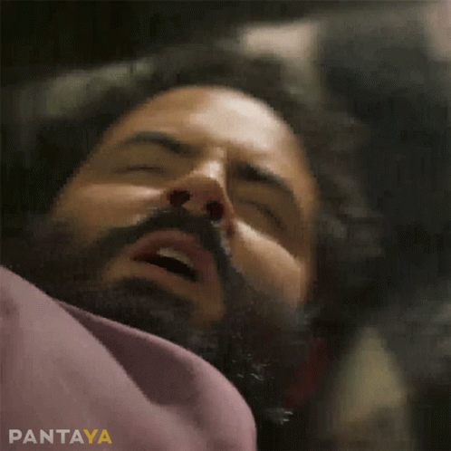 Andy, possibly Jose Eduardo Derbez, is seen deeply asleep or exhausted, lying down with his mouth open.