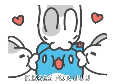 The blue cartoon character Capoo Bug Cat receives kisses from a white rabbit-like character, with 'KISSES FOR UUU' text.