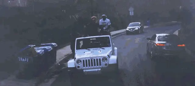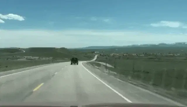 A cartoon Pudgy Penguin drives a retro red convertible with a Cuban flag, cruising through a sunny landscape.