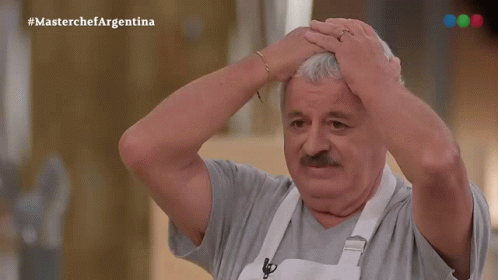 Titi Fernandez looks stressed and annoyed during an episode of Masterchef Argentina, exclaiming 'Caray!'