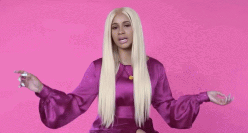 Cardi B speaks passionately, referencing 'Falei' and her hit 'Bodak Yellow' in a vibrant pink setting.
