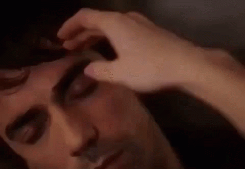A tender caress in Siyahbeyazask, as a woman gently touches a man's forehead in a close-up moment.