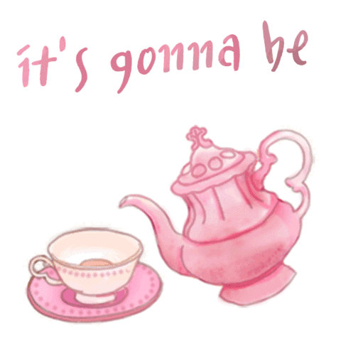 Pink teapot pouring tea into a cup with the comforting message 'it's gonna be okay'.