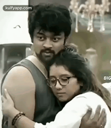 Raju Jeyamohan and Priyanka Deshpande share a comforting hug, showing care and affection in a tender moment.