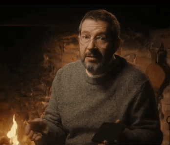 Carles Porta, the host of Crims, speaks in front of a warm fireplace, holding a small object.