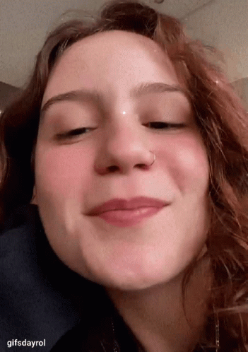 Carolbiazin from Gifsdayrol blows a kiss to the camera, with a playful expression and red hair.