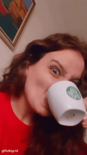 Carolbiazin makes a disgusted face after drinking from a mug, a funny reaction captured by Gifsdayrol.