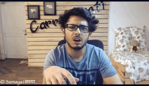 Indian YouTuber Carry Minati (Ajey Nagar) with glasses, making an expressive gesture.