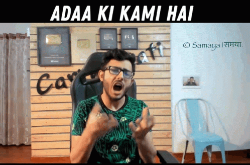 Carry Minati (Ajey Nagar) reacting with an open mouth, with the prominent Hindi phrase 'Adaa Ki Kami Hai' displayed.
