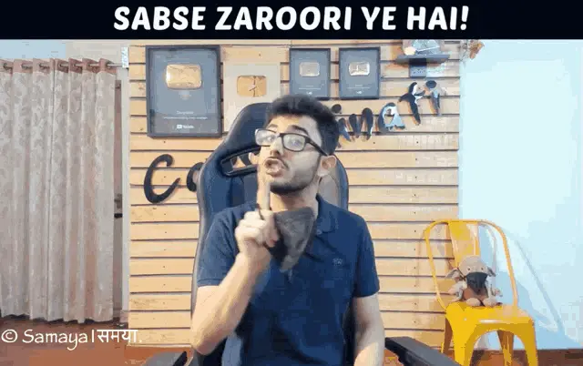 Carryminati (Ajey Nagar) speaks in front of a wall with the Hindi caption 'Chalo Ab Apna Ghar Dikhao'.