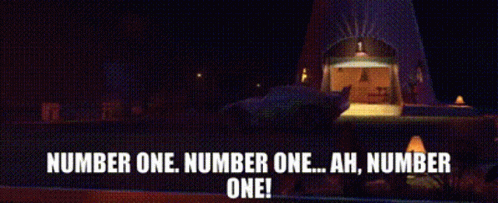 Lightning McQueen from Disney Pixar's Cars declares himself 'Number One' in this iconic scene.