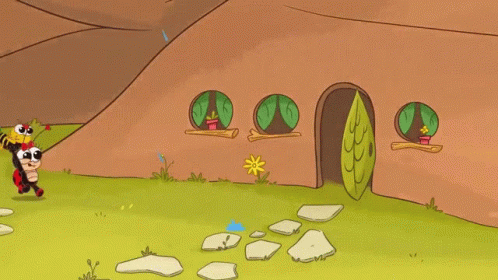 Bob Zoom and his insect friends rush into their little house for shelter as the rain begins to fall.