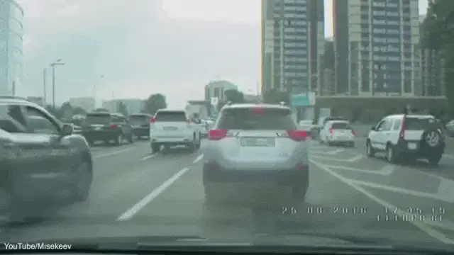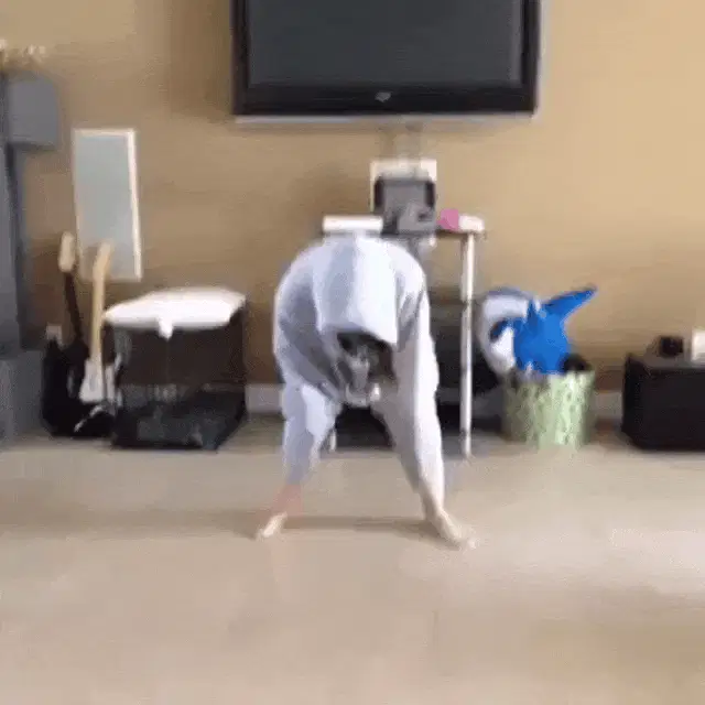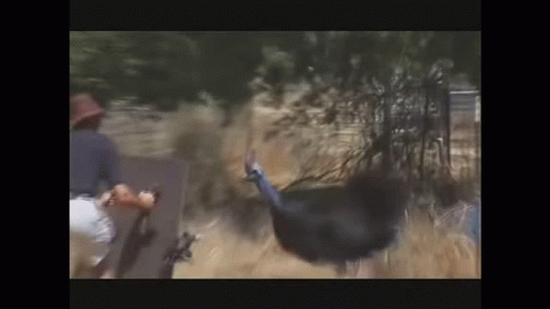 A man uses a shield to defend himself from an aggressive cassowary in an outdoor setting.