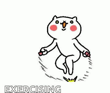 Animated cat happily jump roping, exercising with enthusiasm and a cheerful expression.