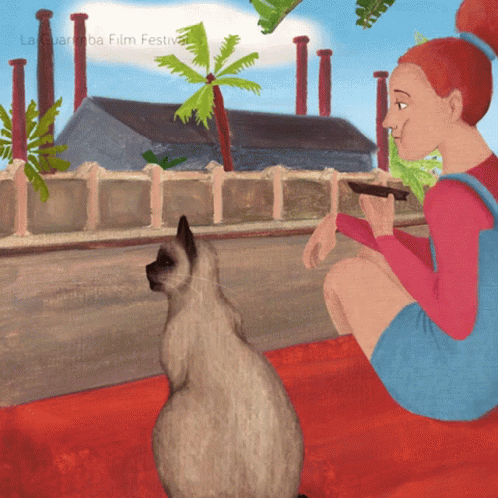 An animated scene featuring a cute cat and a girl, with the 'La Guarimba Film Festival' logo visible.