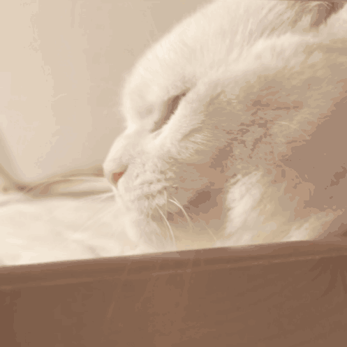 A close-up of a cute cat's face, showing its grumpy and sleepy expression.