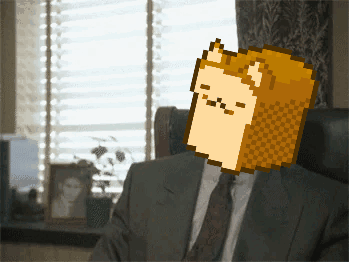 Nicholas Cage as a pixel art loafcat, making a gesture in an office setting.