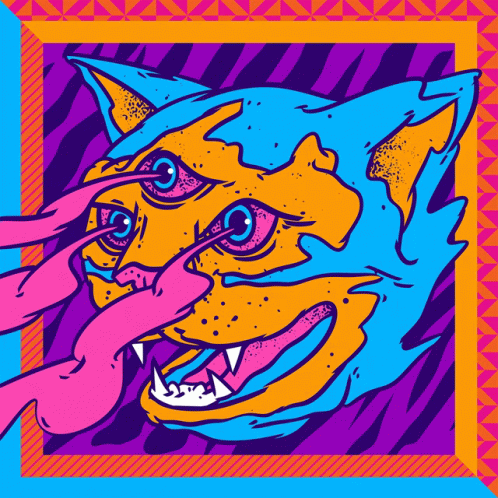 A vibrant and funky Pop Art illustration of a crazy cat sticking out its tongue.