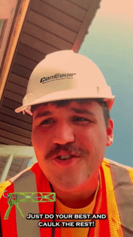 A construction worker shares humorous advice: 'Just do your best and caulk the rest!'