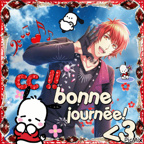 Ittoki Otoya from Uta no Prince-sama wishing 'Bonne Journée' with a cheerful smile.