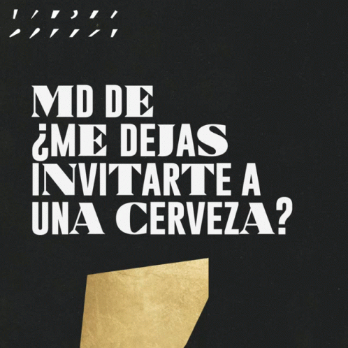 A black screen displays the Spanish phrase 'MD DE ¿ME DEJAS INVITARTE A UNA CERVEZA?' with a golden accent.