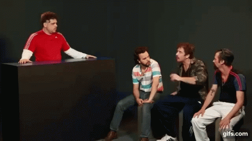 Cdc Choque sketch where a man points and says 'Look at the complaint here' to a group of men.