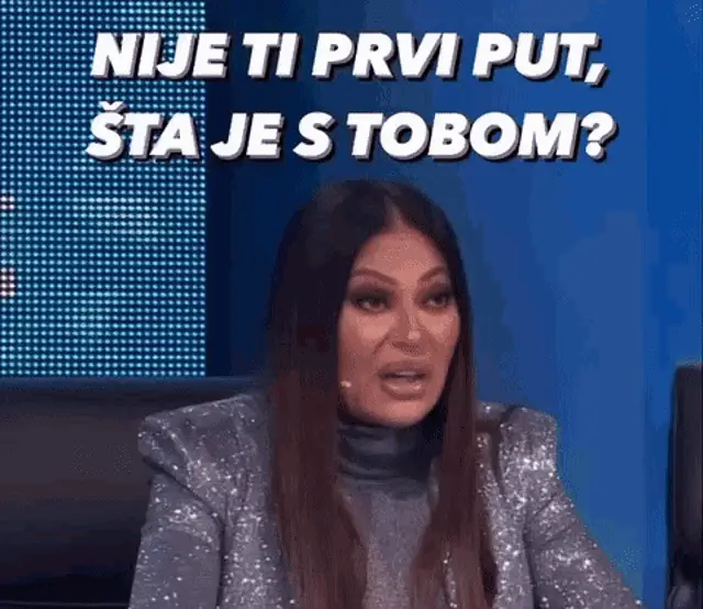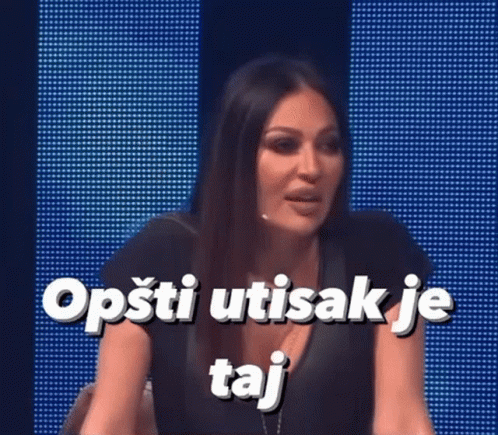 Serbian singer Ceca (Svetlana Ražnatović) speaks with the caption 'Opšti utisak je taj' (The general impression is that).
