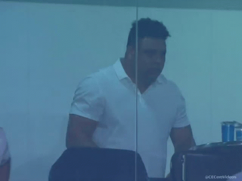 Ronaldo Fenômeno shows an intense reaction while watching a Cruzeiro match.