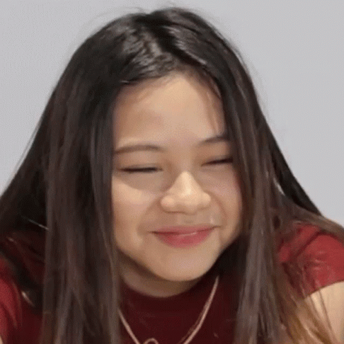Rara giggling sweetly with her eyes closed, a close-up of her joyful expression.