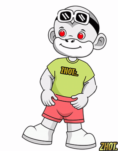 a cartoon character wearing a shirt that says ' zhot ' on it