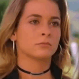 Close-up of a woman from a Brazilian telenovela, wearing a black choker and silver hoop earrings.