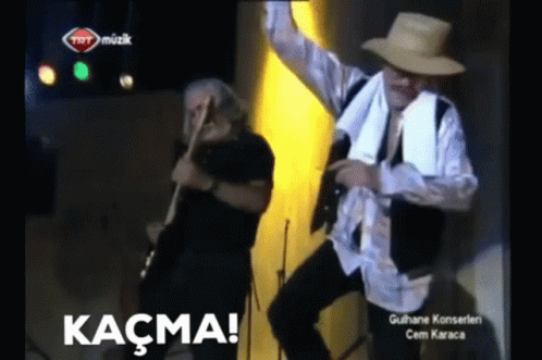 Cem Karaca, the legendary Turkish rock musician, dancing energetically on stage at Gülhane Concerts.
