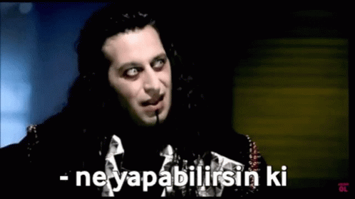 Cem Yılmaz in character, asking 'Ne yapabilirsin ki' (What can you do, though) with a characteristic smirk.