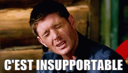 A man making a funny, pained face with the French text 'C'est insupportable' (It's unbearable).