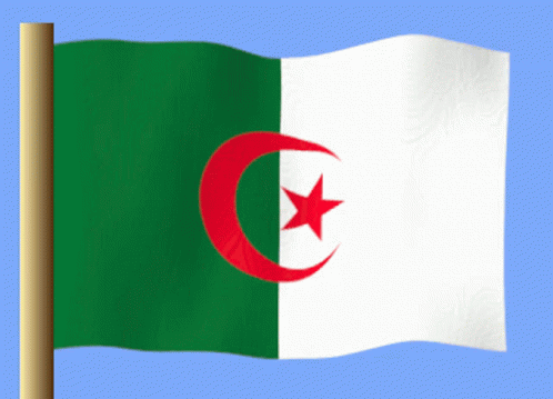 The national flag of Algeria, featuring green, white, and a red crescent and star, waves proudly.