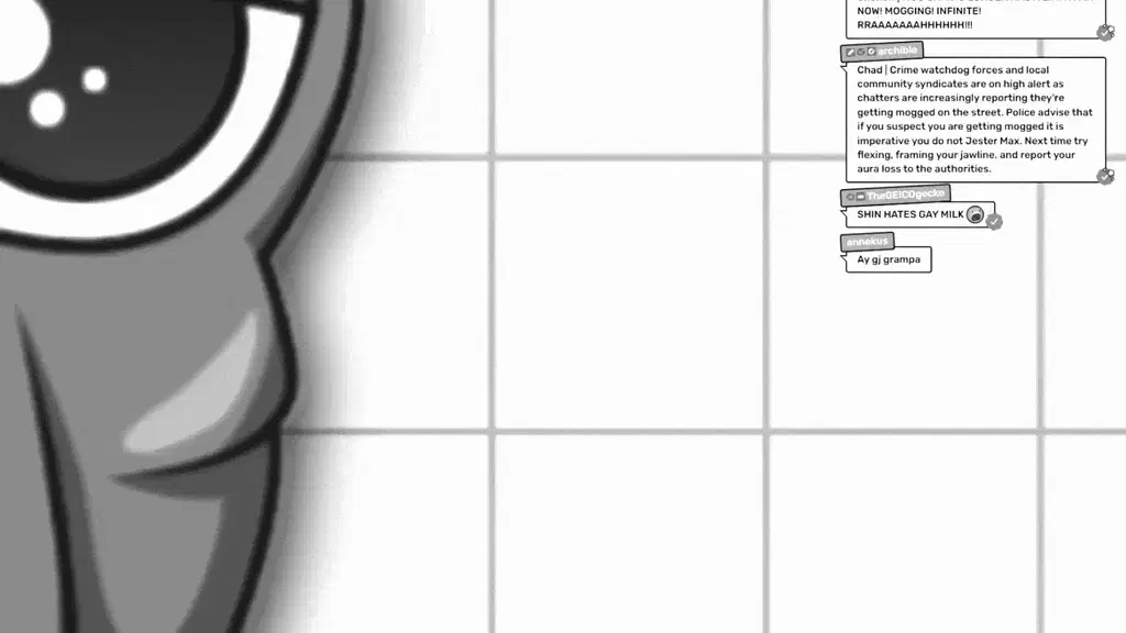 A large, ominous face projected onto a screen, with the text 'Huge_Hitman IS WATCHING' displayed below.