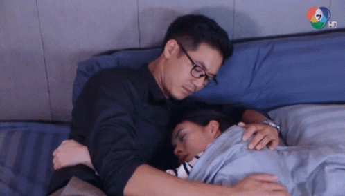 Weir Sukollawat and Mookda Narinrak share a tender hug in the Ch7 drama 'Maan Bang Jai'.