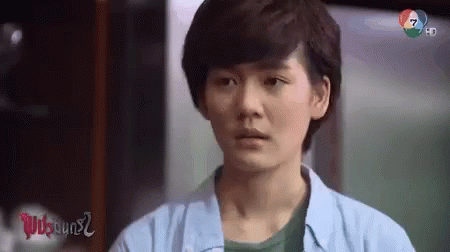 Thai actress Bow Maylada in Ch7drama Petchramantra, a woman in a blue shirt looking thoughtful.