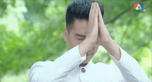 New Wongsakorn performs a respectful 'wai' gesture in a scene from the Ch7drama series 'Buangsabai'.