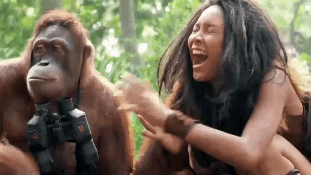 A man from a Ch7 drama covers his face with a tablet, appearing shy, while another man smiles beside him.