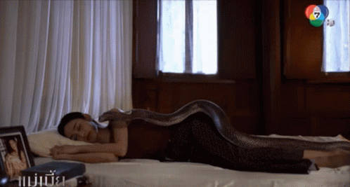 Now Tisanart from Mae Bia drama sleeping with a large snake on her body.